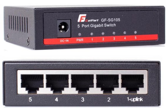 • Urządzenie GF-SG105 to przełącznik sieciowy Gigabit Ethernet przeznaczony do użytku domowego lub biurowego (zastosowania SOHO).