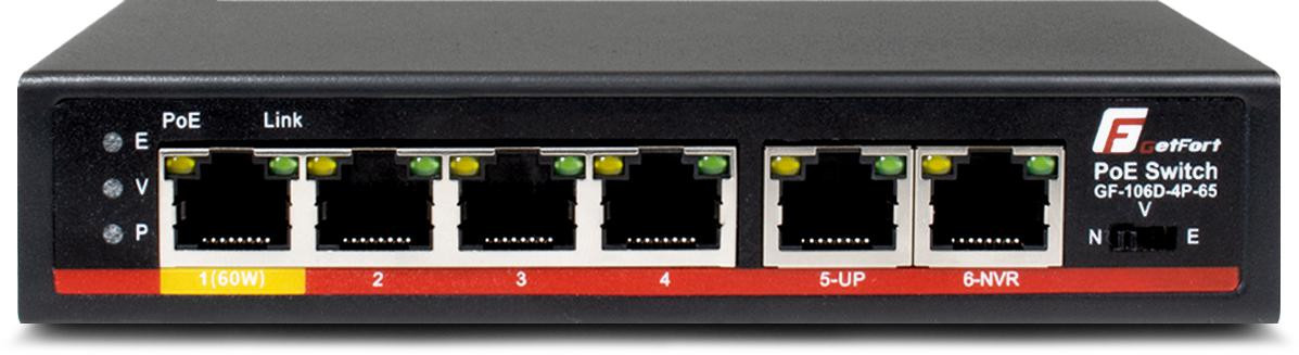 SWITCH POE GETFORT 4FE x POE + 2FE UPLINK 65W