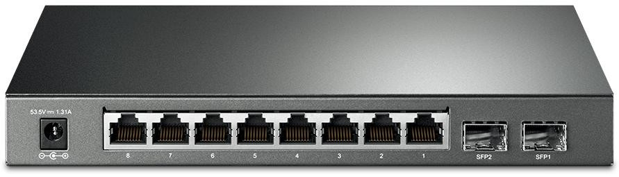 Gigabitowy przełącznik Smart TL-SG2210P TP-Link wyposażony jest w 8 gigabitowych portów RJ45 oraz 2 sloty SFP, a jego całkowita moc zasilania PoE wynosi 58 W*. Wszystkie porty RJ45 obsługują standardy 802.3af/at. Urządzenie zapewnia dużą wydajność przesyłania danych, zaawansowane funkcje zabezpieczeń, QoS oraz rozbudowane funkcje zarządzania ruchem w warstwie drugiej.