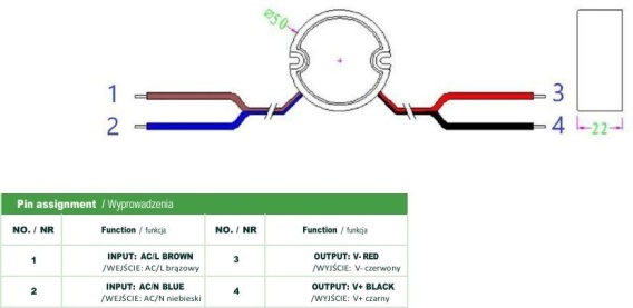 Zasilacz impulsowy dopuszkowy hermetyczy Voltage 12V 0,83A 10W IP67 50mm - wymiary: