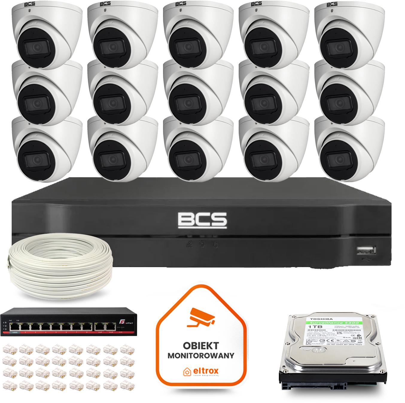 • Zestaw monitoringu IP BCS Line 15x Kamera BCS-L-EIP14FSR3-AI1 Rejestrator z dyskiem