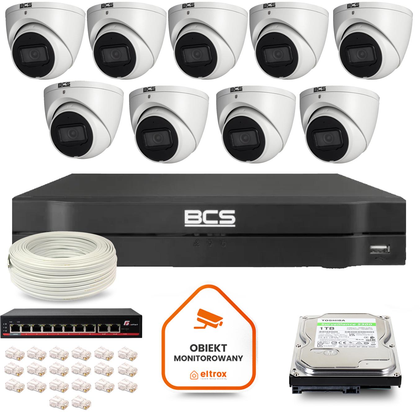 Zestaw monitoringu IP BCS Line 9x Kamera BCS-L-EIP14FSR3-AI1 Rejestrator z dyskiem