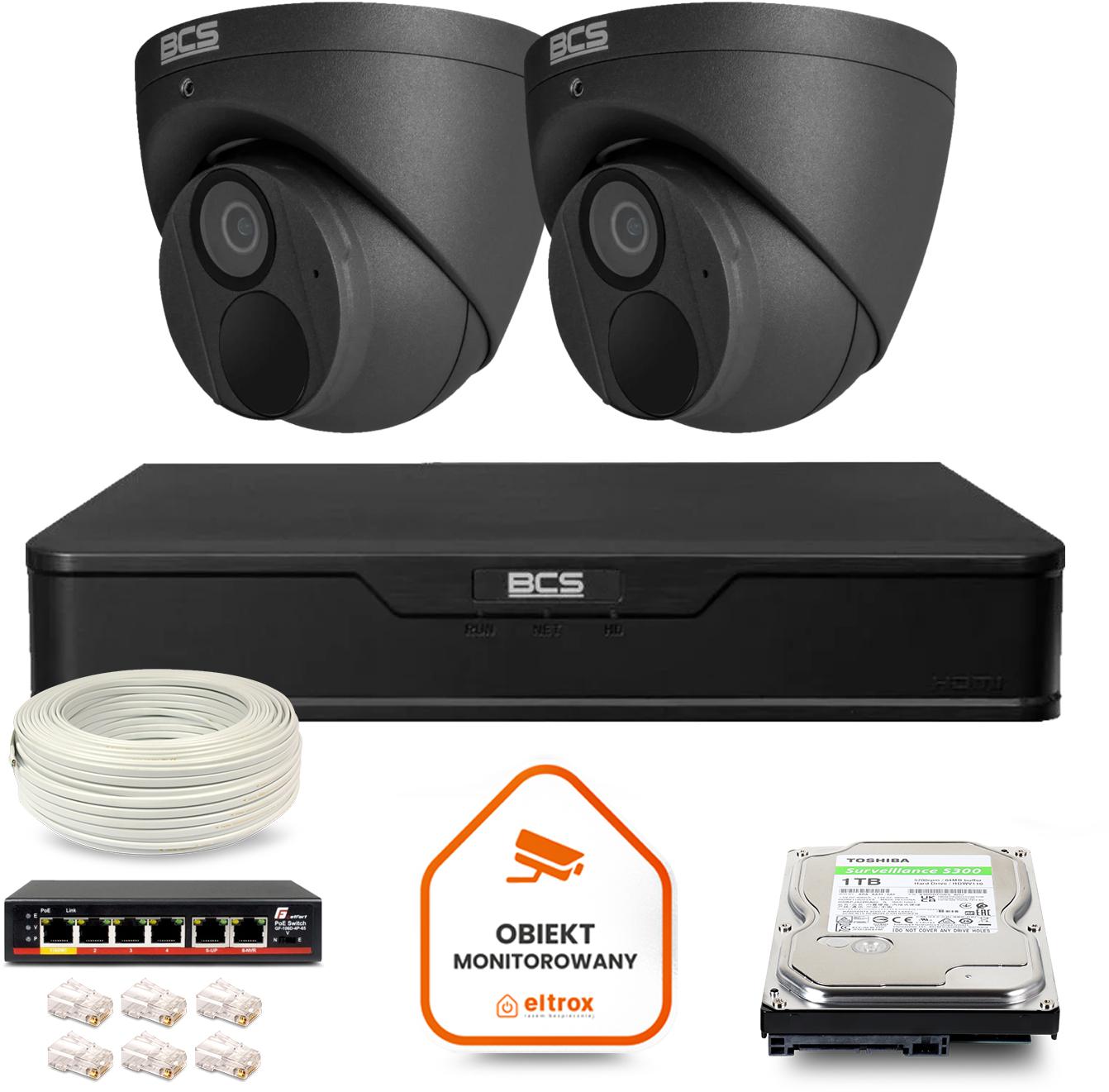 Zestaw monitoringu IP BCS Point 2x Kamera BCS-P-EIP28FWR3-Ai2-G Rejestrator z dyskiem